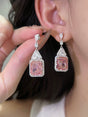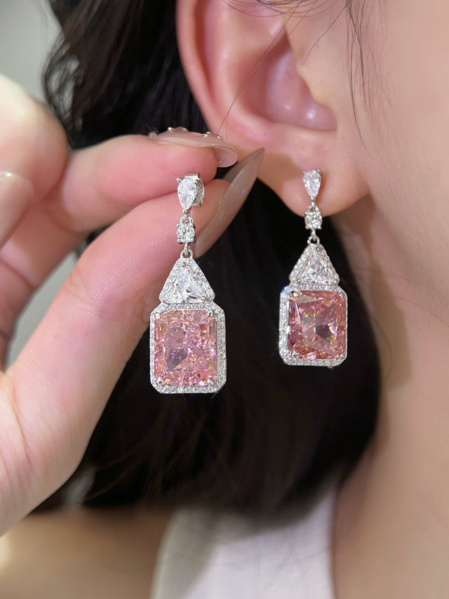 Rectangular shaped pink ice diamond cut centerpiece with sterling silver dangle.,Length 1.32”